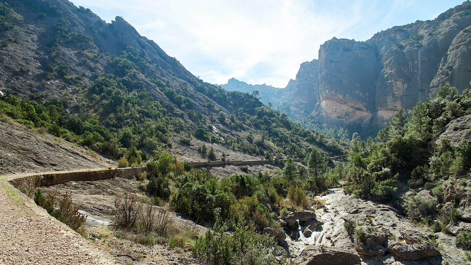 Wij maakten dit landschap niet, geen mensenhand kwam eraan te pas om majestueuze bergen te doen verrijzen tot wel 1.000 meter boven de vallei. Niemand boorde een bron aan en liet het water slingerend níet naar de kust lopen, amper 40km hemelsbreed hiervandaan, noch stuurde die het honderden kilometers de andere kant op, landinwaarts door kloven en ravijnen om het met de machtige Ebro te laten versmelten. Zou iemand bedacht kunnen hebben om steeneiken, pijnbomen, wilde roos, hulst en geurige rozemarijn in ontelbare aantallen uitbundig te laten groeien, overal waar het maar enigszins kan. En dieren te laten floreren, zoals dassen, zwijnen, wilde geiten en steenarenden, vale gieren tal van kleinere vogelsoorten die hun bescheiden omvang compenseren met hun verkwikkende harmonieën.
