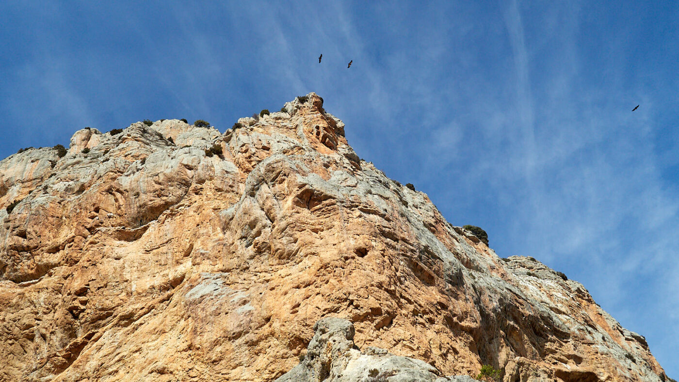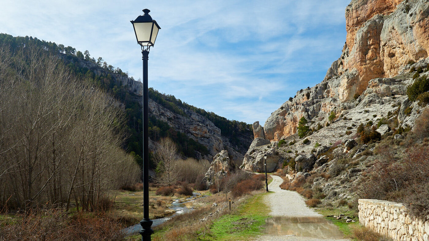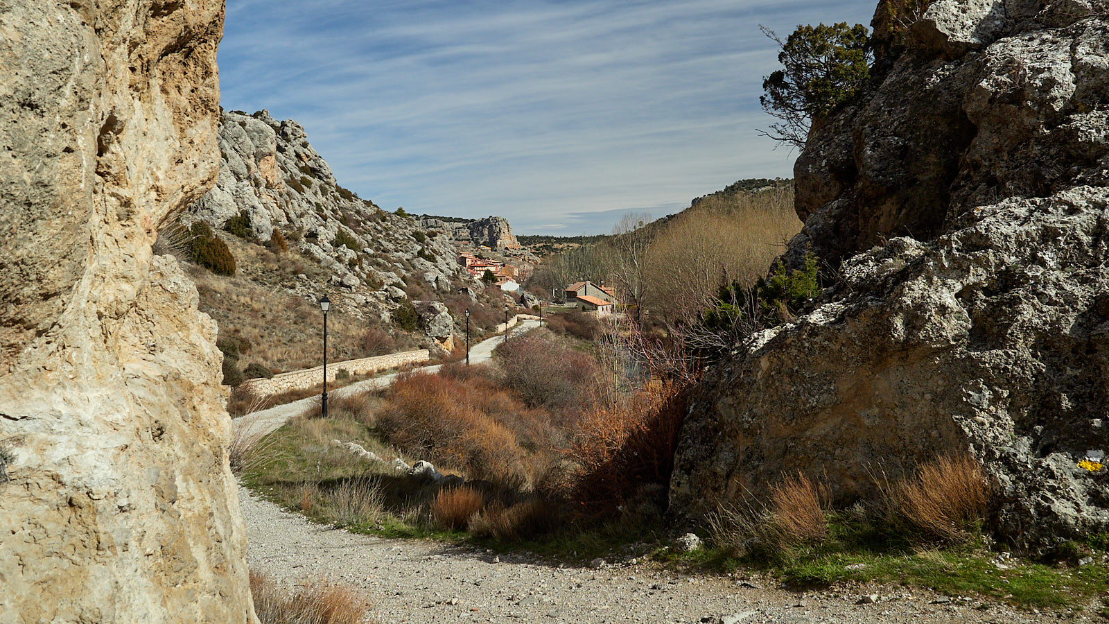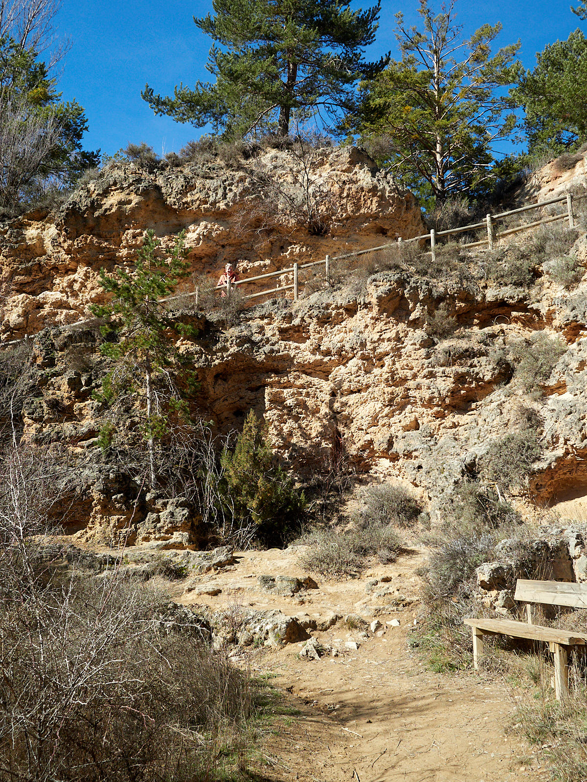 We vervolgen onze autorit. Over de koers hoeven we niet te denken, er is maar één weg. Die volgt de slingerende Rio Guadalaviar. Het is een smalle kloof, waarbij de rotswanden soms net zover overhellen als de weg breed is. Het heeft wel wat griezeligs om daaronder te rijden. Omdat het zo slingert kun je soms niet sneller dan 40km. Toch komen we al snel bij verrassing twee: een waterval van 20 meter.