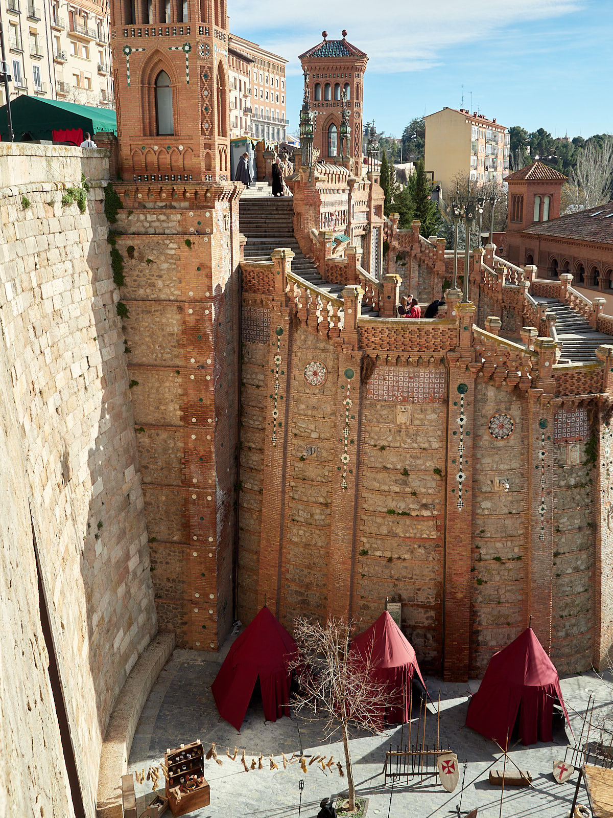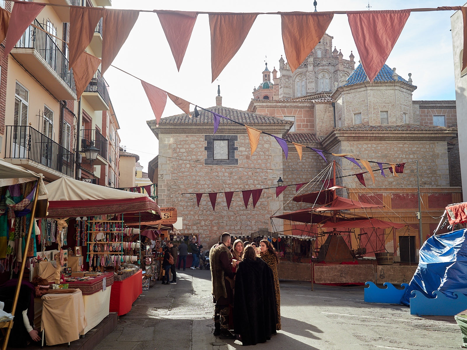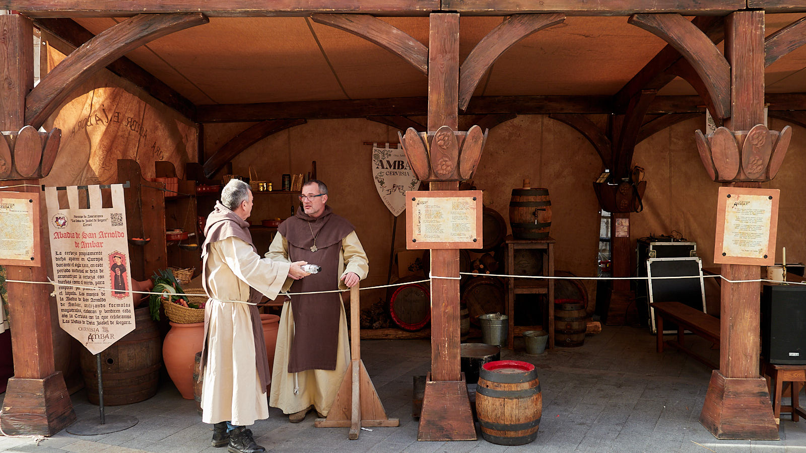 In het oude stadsdeel (Casco historico) zijn veel straten afgezet, flanerende mensen hebben de ruimte ingenomen. Velen daarvan gaan gekleed in schitterende middeleeuwse gewaden. Sommigen als koning of princes, anderen als ridder, boef, berber of ambachtsman. Hele families doen mee aan de verkleedpartij. Overal op de trottoirs en pleinen zijn erfjes afgebakend met houten hekjes of dikke touwen. Daarbinnen staan grote middeleeuwse tenten met historische parafernalia eromheen, zoals bijlen, zetels en lansen en steevast is er een walmend houtvuur met een grote pan aan een driepoot erboven. Heb je geen houtvuur, doe je hier niet mee, kennelijk. Als het in de middeleeuwen ook zo rokerig op straat was, snap je dat de mensen niet oud werden. In de tenten staan lange tafels en daaraan zitten de gasten met drank en eten. Het is een vrolijk tumult, met goede luim en luid gelach. De mensen zijn hartelijk, een paar keer worden we uitgenodigd erbij te komen. Dat durven we niet.