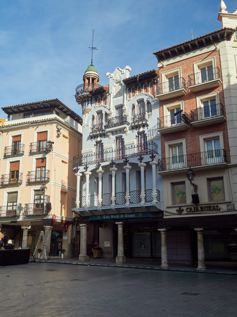 Oké, wandelen doen we dan maar niet meer. Weet je wat, niet al te ver weg ligt Teruel, een oude stad, bekend om zijn Mudéjar bouwkunst, laten we daar een kijkje nemen, kunnen we meteen boodschappen doen. Blijkt 50 minuten rijden te zijn, tja het gaat niet snel natuurlijk.
